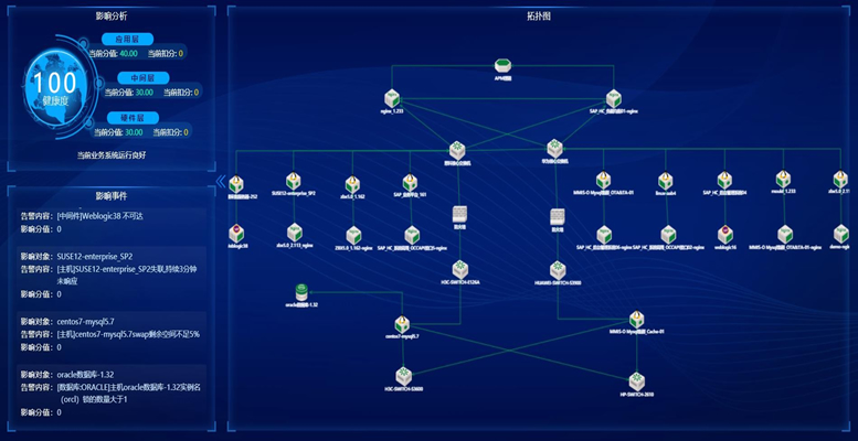 集中监控:从底层硬件到上层应用,,,监控数据需要集中采集和分析,,,,并提供统一的告警通知和业务全景可视化;同时支持与虚拟化、、、、云平台等外部平台对接起来。。